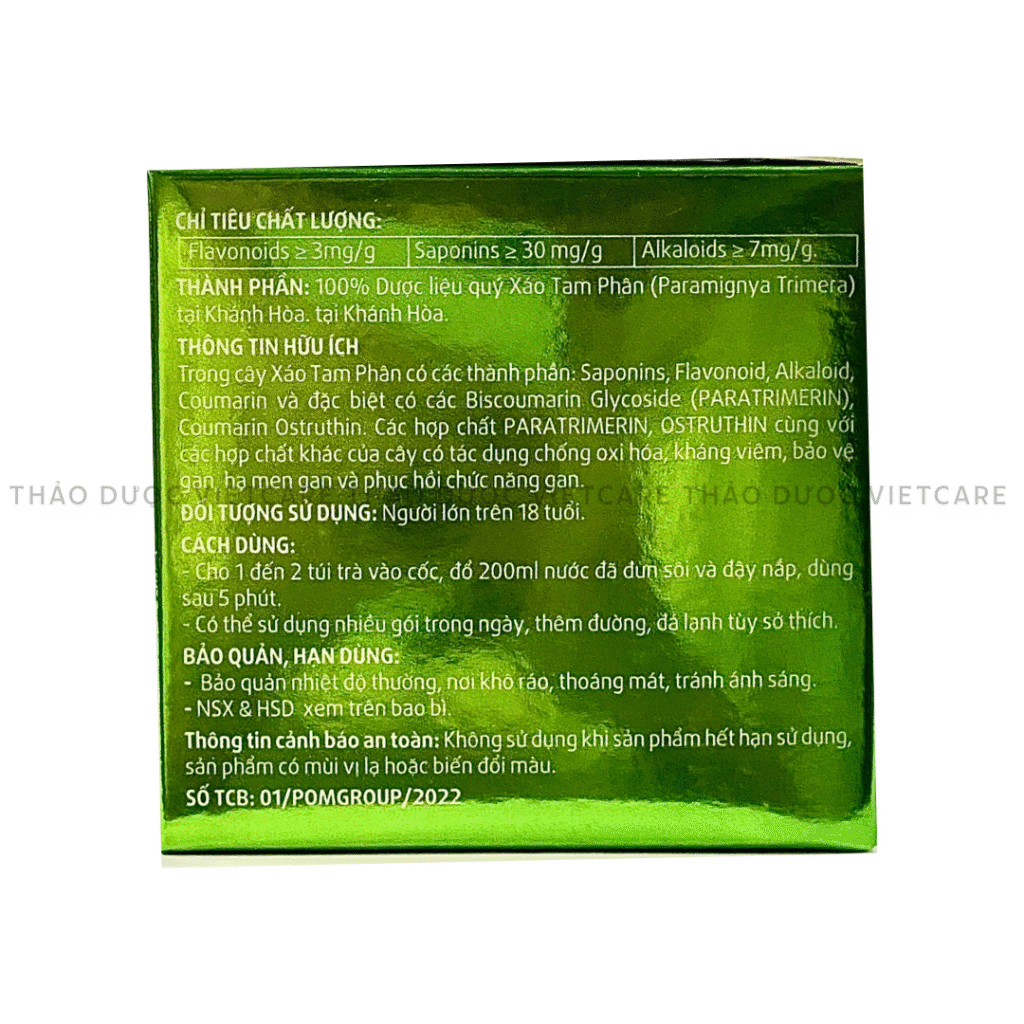 Trà thảo mộc Xáo Tam Phân Pomtea hộp 20 gói – hỗ trợ giải độc gan, giảm nóng trong, giúp ngủ ngon. Thành phần 100% dược liệu Việt, dùng hàng ngày thay nước lọc.